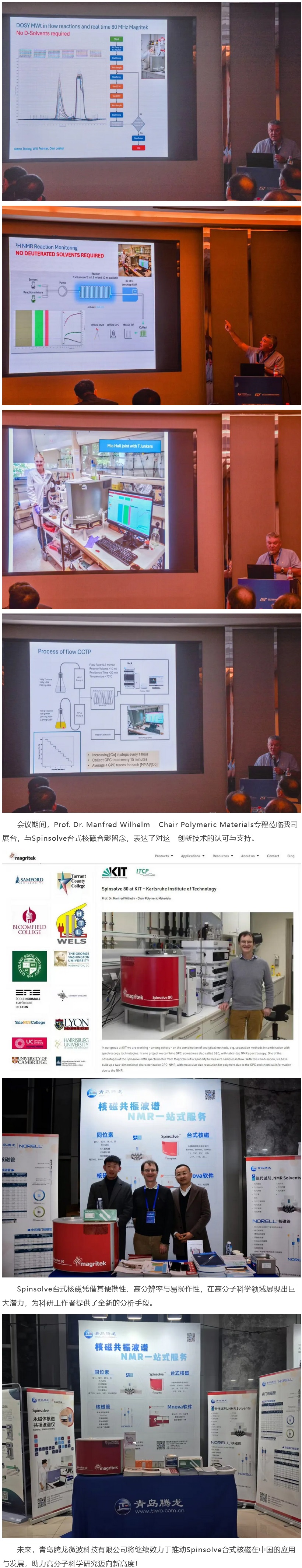 作为Magritek旗下Spinsolve系列台式核磁的中国总代理,青岛腾龙微波科技有限公司携Spinsolve台式核磁亮相本次会议,吸引了众多专家学者的关注。值得一提的是,英国University of Warwick的David Haddleton博士在报告中多次提及Spinsolve台式核磁,并对其性能与应用给予了高度评价。